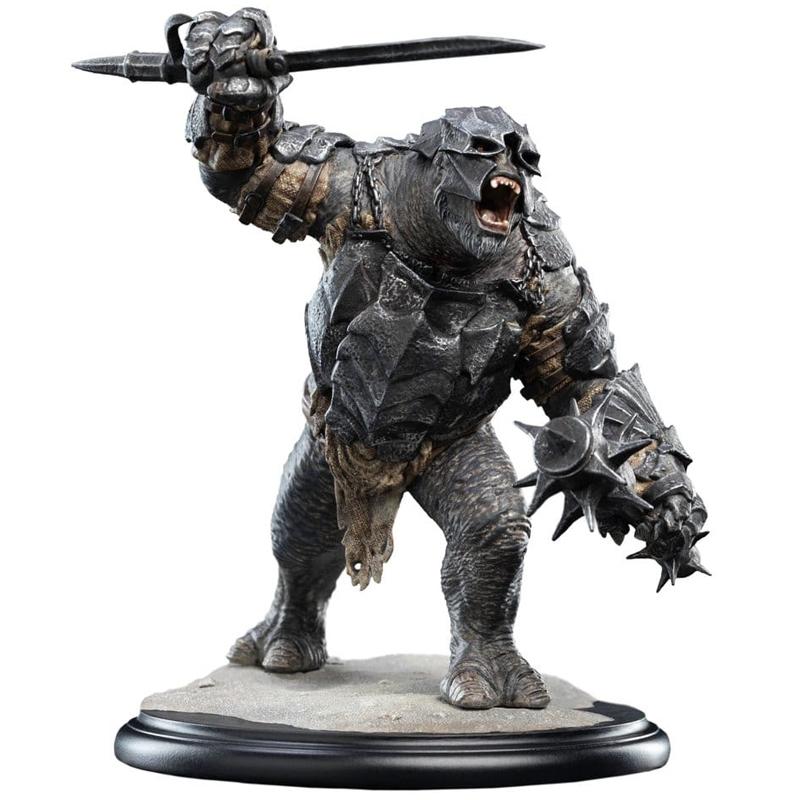 La estatua Olog-hai de la Puerta Negra de El Señor de los Anillos impone respeto desde el primer vistazo, una pieza que transmite fuerza, brutalidad y fidelidad absoluta al universo cinematográfico de la trilogía. Creada por Weta Workshop, el mismo estudio responsable del diseño y los efectos físicos de las películas, esta figura captura con una precisión extraordinaria al temido Olog-hai que sembró el caos durante la Batalla de la Puerta Negra. Cada músculo tensado bajo su armadura de guerra, cada detalle del rostro lleno de furia y cada arma preparada para el combate convierten esta estatua en una representación auténtica del terror que se alzó frente a Aragorn en uno de los momentos más épicos de El Retorno del Rey. Fabricada principalmente en polystone y esculpida digitalmente por el artista Jason Zhang, esta estatua de 14 cm de altura destaca por su acabado artesanal, con un pintado a mano que aporta profundidad, realismo y carácter propio a cada unidad. Sus dimensiones aproximadas de 12,5 x 13,5 x 13 cm la hacen perfecta para lucir en vitrinas, estanterías o colecciones dedicadas a figuras de cine de alta calidad. No se trata solo de una figura decorativa, sino de una pieza de colección que refleja la crudeza y el poder de una de las criaturas más temidas de la Tierra Media, ideal para quienes buscan objetos exclusivos, oficiales y con un alto nivel de detalle que marquen la diferencia en cualquier colección inspirada en El Señor de los Anillos.