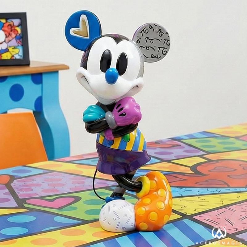 El icono más universal de Disney se reinventa con una explosión de color y creatividad en esta figura de gran impacto visual firmada por Romero Britto. Esta figura Disney Mickey Mouse destaca por su estilo pop art inconfundible, donde los colores vibrantes, los patrones icónicos y los acabados brillantes transforman al personaje clásico en una pieza contemporánea llena de energía y personalidad. El diseño rompe con lo tradicional y aporta un aire moderno y artístico que convierte esta figura coleccionable Disney en un auténtico punto focal dentro de cualquier espacio, ideal para quienes buscan piezas diferentes y con carácter propio. Con una altura de 25,5 cm, ofrece una presencia destacada que realza vitrinas, estanterías o zonas decorativas dedicadas al cine y al arte pop. Detalles originales como la cola metálica aportan dinamismo y un toque lúdico que refuerza su identidad única. Esta figura Mickey Mouse Romero Britto es perfecta para quienes valoran el diseño atrevido y la reinterpretación artística de los grandes clásicos, convirtiéndose también en un excelente regalo Disney Mickey Mouse que une creatividad, calidad y un estilo contemporáneo pensado para sobresalir en las mejores colecciones inspiradas en el cine y el arte moderno.