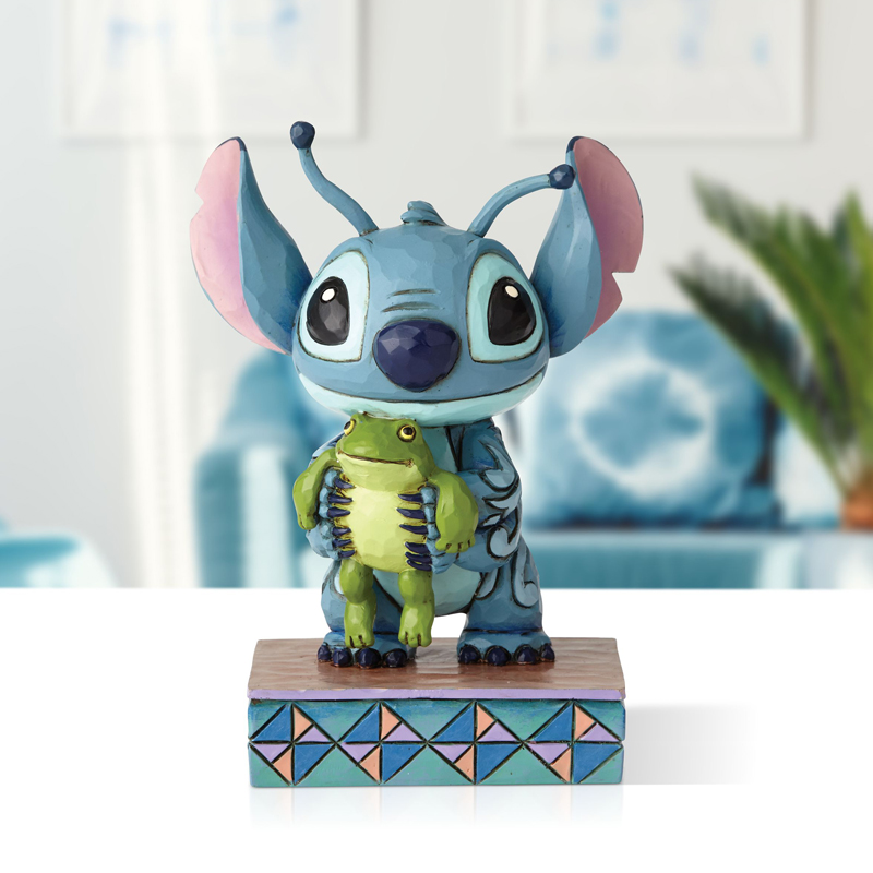 Tierna figura de Stitch basada en la película Lilo & Stitch del año 2002 de Walt Disney. Esta preciosa figura tiene unas medidas aproximadas de 10 x 6 x 7 cm., se ha mezclado la magia de las figuras de Walt Disney con el arte Heartwood Creek realizado por Jim Shore. La figura está elaborada en poliresina y pintada a mano con acabados en madera tallada y efecto folkart Americana. Producto Oficial Stitch Personality Pose Disney. www.aceroymagia.com