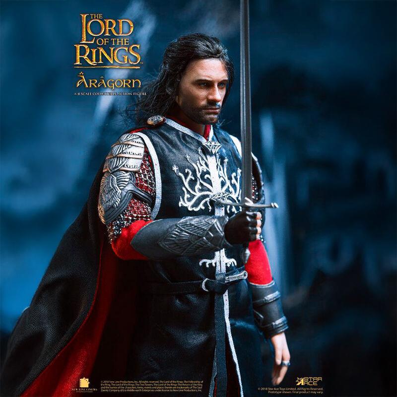 El legado de Aragorn Rey Elessar cobra presencia real en una pieza pensada para coleccionismo exigente: la figura Aragorn 1/8 Real Master Series de Star Ace, basada en su apariencia en The Lord of the Rings: Return of the King. Con una altura aproximada de 22,5 cm, ofrece un cuerpo totalmente articulado que permite poses naturales y escenas de acción con una silueta firme y heroica, mientras el retrato destaca por su fidelidad cinematográfica, con textura de piel detallada, pintura a mano y cabello implantado que aporta un acabado mucho más realista en vitrina. El conjunto se completa con un vestuario recreado con precisión, incluyendo capa y armadura, además de espada con vaina, logrando un equilibrio perfecto entre presencia premium y autenticidad de pantalla. Ideal para exponer como pieza central en una colección de la Tierra Media o para acompañar otros personajes a escala, esta figura transmite carácter, nobleza y determinación en cada detalle, convirtiéndose en una elección segura para quien busca una versión de Aragorn con calidad de museo y un impacto visual inmediato.