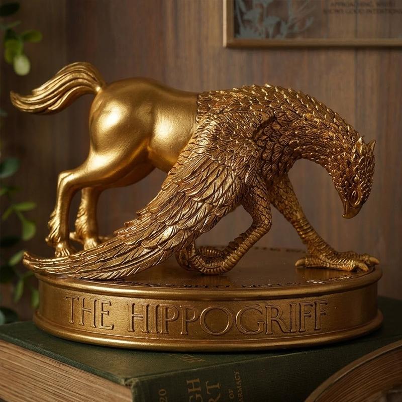 Majestuosidad y magia de Hogwarts en una pieza con acabado de vitrina: la figura Buckbeak (Hipogrifo) de Harry Potter captura la elegancia y la fuerza de una de las criaturas más icónicas del mundo mágico, con un nivel de detalle que se aprecia especialmente en el trabajo de las alas y la postura agachada, lista para alzar el vuelo. Su acabado en tono dorado envejecido y la base con relieve le dan un aspecto de coleccionable premium, ideal para destacar en estanterías, escritorios o vitrinas junto a otras figuras de la saga, aportando un punto decorativo muy llamativo y diferente. Con un tamaño aproximado de 17 x 9 x 13 cm, ofrece presencia sin ocupar demasiado espacio, convirtiéndose en una pieza perfecta para exposición y en un regalo fantástico para cualquier seguidor de Harry Potter, capaz de generar conversación y elevar cualquier rincón temático.